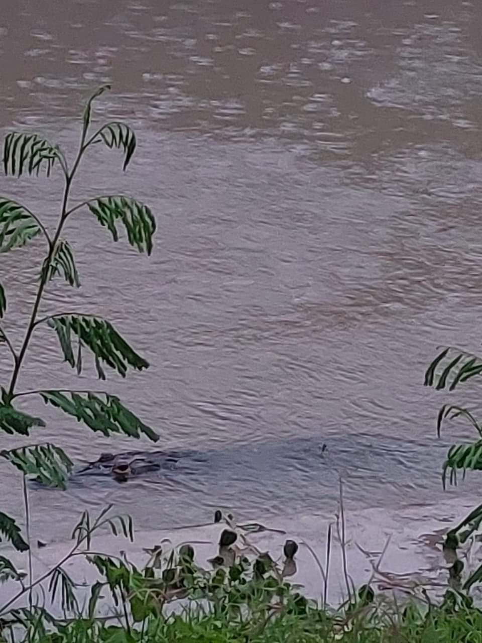 En Presidentes de México un lagarto fue avistado en la corriente de agua, ante el asombro de vecinos.