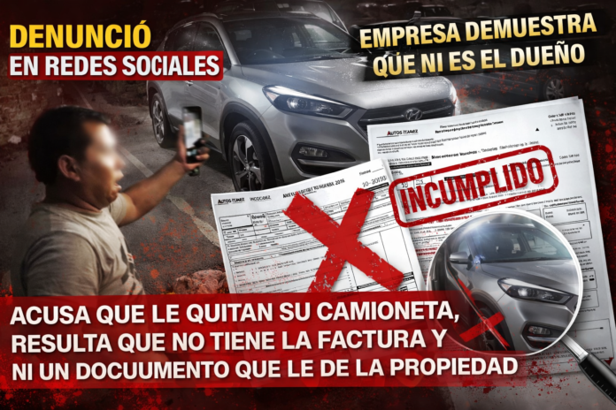 Fue entonces cuando la empresa, al tener conocimiento del caso, realizó el procedimiento legal correspondiente para recuperar la unidad, presentando la documentación necesaria. Incluso, la empresa exhibió la factura original del vehículo y comprobantes de tenencias, acreditando la legítima propiedad y el proceso legal seguido. Asimismo, dejó en claro que la persona que aparece en el video no figura como comprador original de la unidad, lo que refuerza la inconsistencia de su versión.