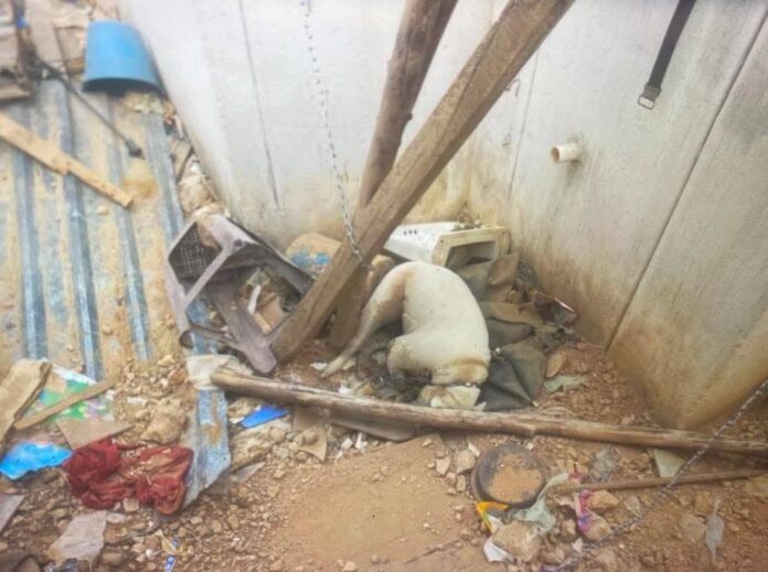 El mal olor proveniente de un predio en la calle 51 por 42 y 42 A del Fraccionamiento Piedra de agua en Umán alertó a los vecinos que terminaron dando con un perro muerto, amarrado en el predio en cuestión.