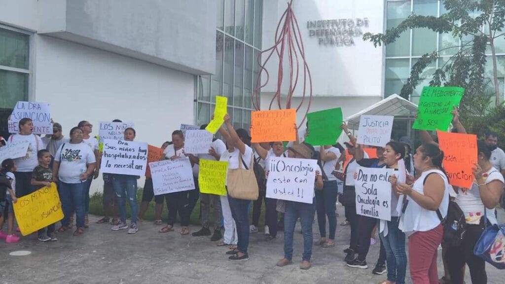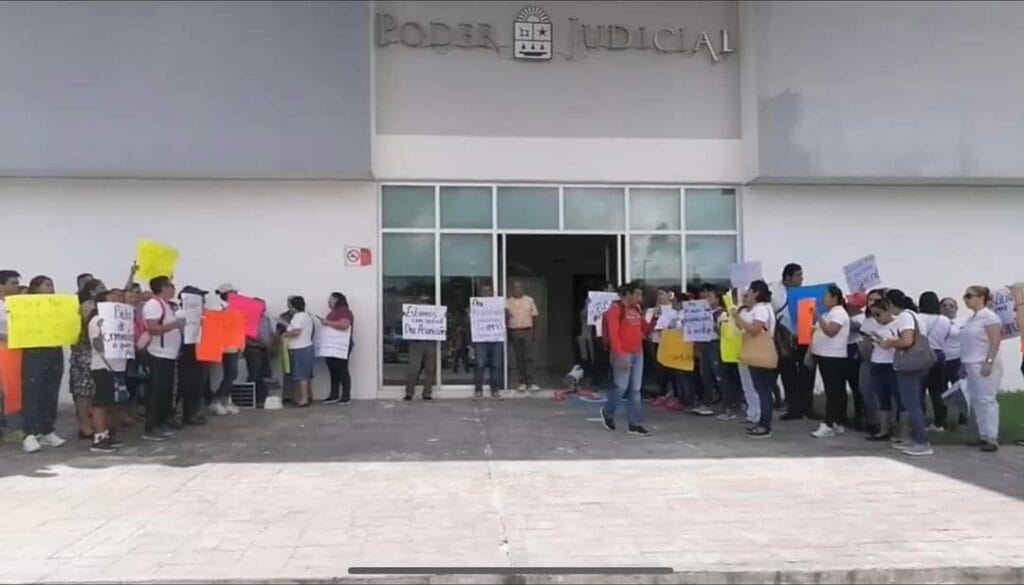 La protesta se llevó a cabo a las afueras de los juzgados penales de Chetumal en apoyo a la Doctora Asunción Encarnación Jiménez, quien enfrenta cargos de robo agravado junto con un hombre llamado Hipólito.