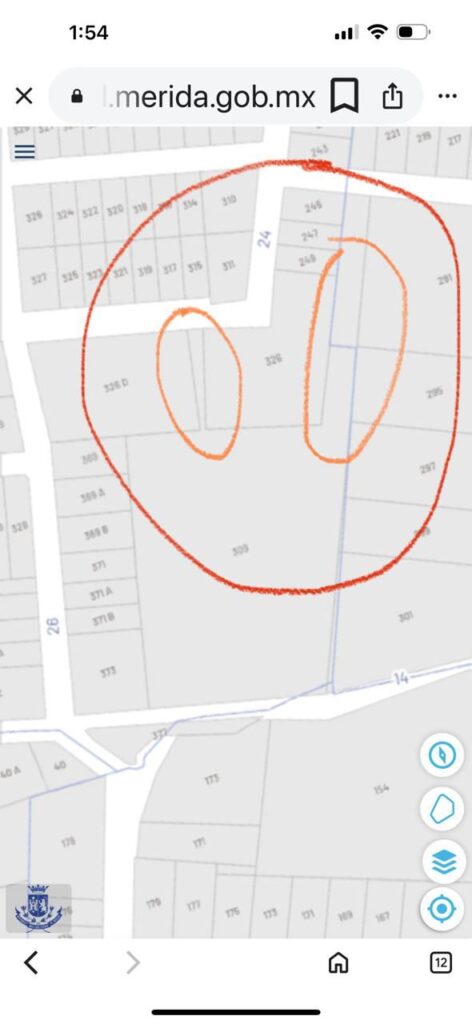El terreno, de 2,485 metros cuadrados y ubicado en la calle 41A #326 del fraccionamiento Montealbán, hoy es el sitio donde se levanta un complejo de seis pisos con más de 100 departamentos, pese a que viola normas de altura y densidad, ademas de apoderarse de los laterales del terreno lugar donde deberia haber calles ahora ocupara el edificio.