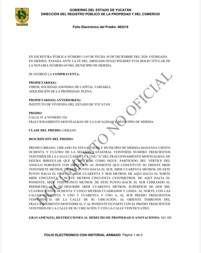 De acuerdo con una investigación, el exdirector del Instituto de Vivienda del Estado de Yucatán (IVEY) y actual coordinador general de Desarrollo Ordenado y Gestión de la Ciudad de Mérida, Carlos Viñas Heredia, vendió en diciembre de 2020 un predio del IVEY a la empresa VIBEM, propiedad de la familia Valencia Duarte, por apenas 5 millones 800 mil pesos, una cifra muy inferior a su valor real.