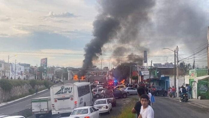 En imágenes que circulan en las redes sociales, se aprecia como un comando armado despoja de sus vehículos a personas que circulan en la carretera a Zapopan, incluyendo una unidad del transporte público a la que prenden fuego.