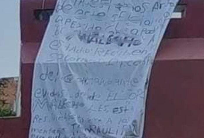 De acuerdo con las investigaciones, la SPSC informa que el mensaje dejado en ese monumento histórico tiene como finalidad amedrentar al comandante, a quien hacen mención en dicha manta para que les deje operar en sus ilícitos.