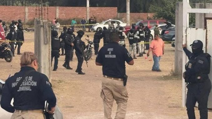 Tras la masacre en la cancha de futbol de Salamanca, elementos de la Policía Municipal, Guardia Nacional, Ejército Mexicano y Fuerzas de Seguridad Pública del Estado acordonaron la zona e iniciaron un operativo conjunto para resguardar el área y apoyar las labores de investigación de la Fiscalía General del Estado.