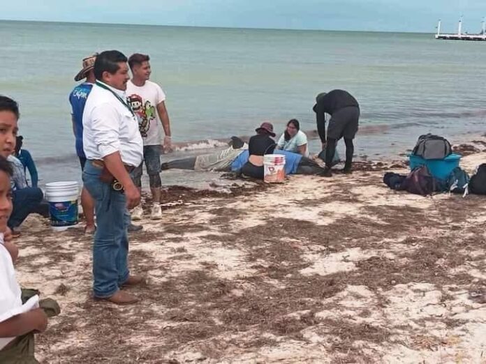 Vecinos de Telchac Puerto hacen un llamado de auxilio a las autoridades locales, solicitando intervención para dos delfines que encallaron en la costa de la zona. Los mamíferos, de aproximadamente dos metros de longitud, llevan varias horas fuera del mar, a pesar de los esfuerzos de ciudadanos por devolverlos al agua, ya que estos regresaban a la costa.
