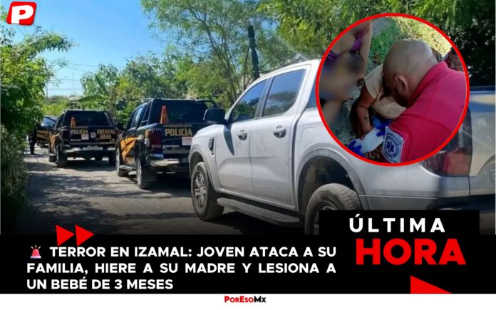 Izamal, Yucatán.— La violencia familiar volvió a estallar con crudeza en el Pueblo Mágico de Izamal, donde un joven de apenas 20 años fue detenido tras protagonizar un ataque brutal dentro de su propio hogar, dejando como saldo a un bebé lesionado y a dos mujeres heridas, una de ellas su propia madre.