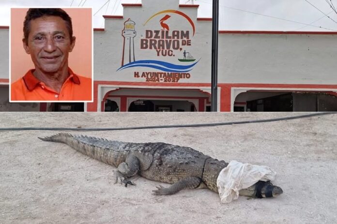 Ante la falta de apoyo de la policía municipal y de Protección Civil, que dijeron que su trabajo no es atrapar cocodrilos, vecinos de la calle 17 entre 26 y 28 atraparon uno y lo arrojaron en el palacio municipal.